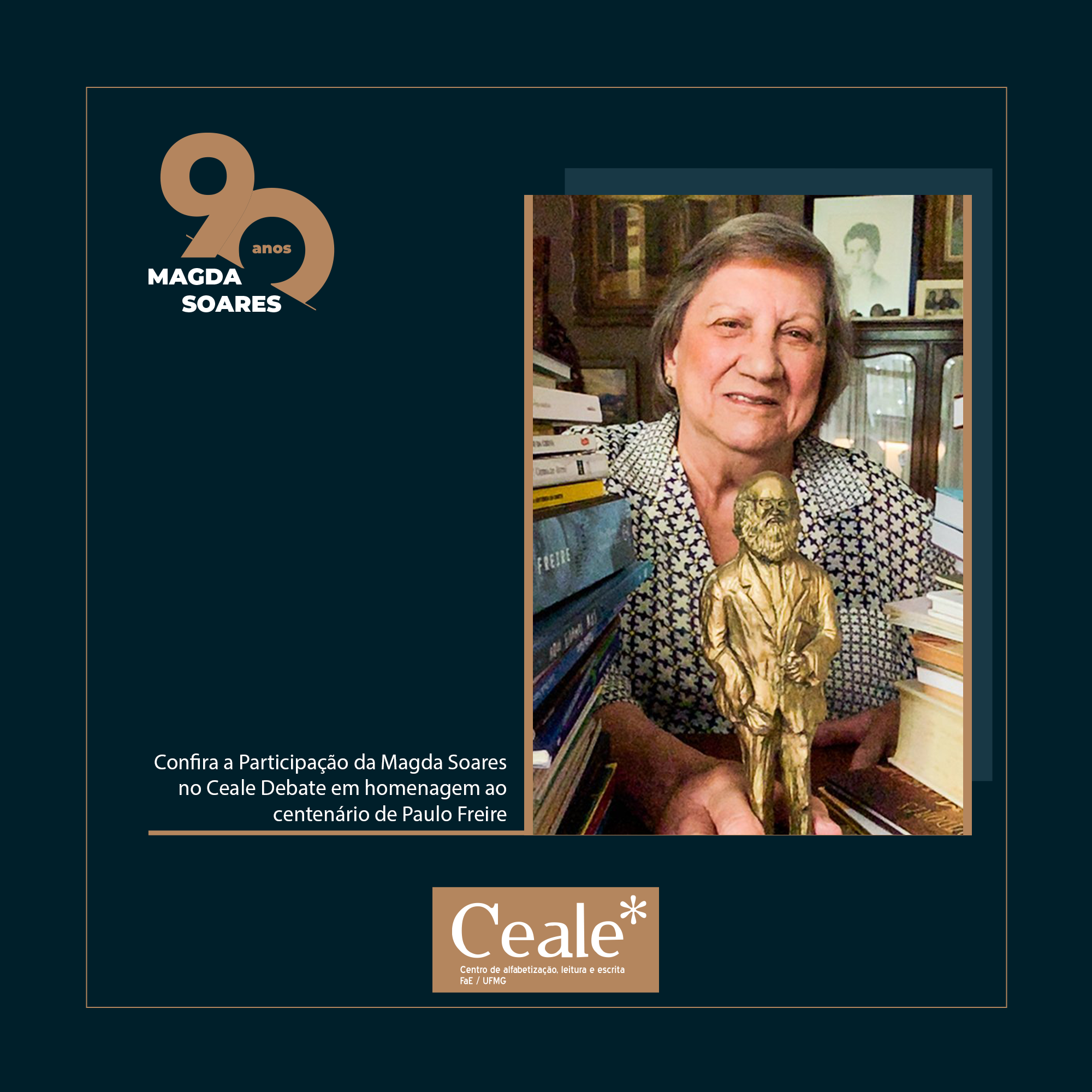 Em 19 setembro de 2021, comemoramos o centenário do nascimento de Paulo Freire. Para marcar essa data tão importante, o Ceale Debate convidou Magda Soares, que sempre expressou sua admiração pelo trabalho de Freire, para promover uma discussão sobre o conceito de alfabetização na perspectiva do patrono da educação brasileira. Além disso, a professora emérita da Faculdade de Educação da UFMG defendeu a presença do letramento associado à alfabetização. A discussão foi intermediada pelas pesquisadoras Francisca Maciel e Maria José Souza.