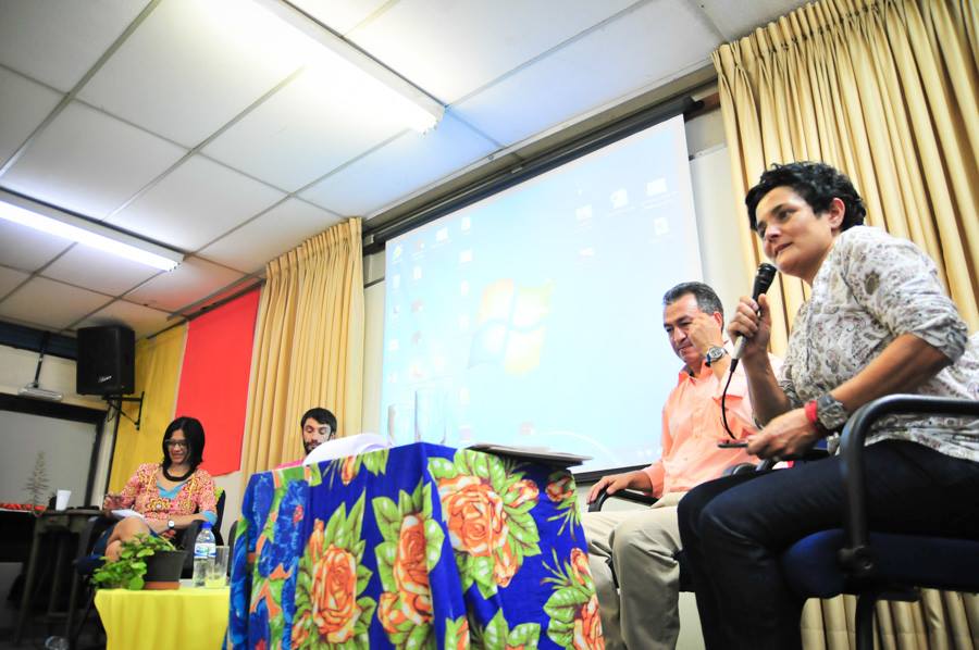 A relação entre a arquitetura da cidade e a escola foi pauta de discussão no segundo dia do IV Seminário Internacional Teias de Cidadania. A conversa começou com Beatriz Goulart, coordenadora do escritório ‘Cenários Pedagógicos’ de São Paulo, que faz pesquisas e projetos de espaços escolares e urbanos. Arquiteta, urbanista e pesquisadora, Beatriz discutiu a insustentabilidade da atual forma de organização escolar.