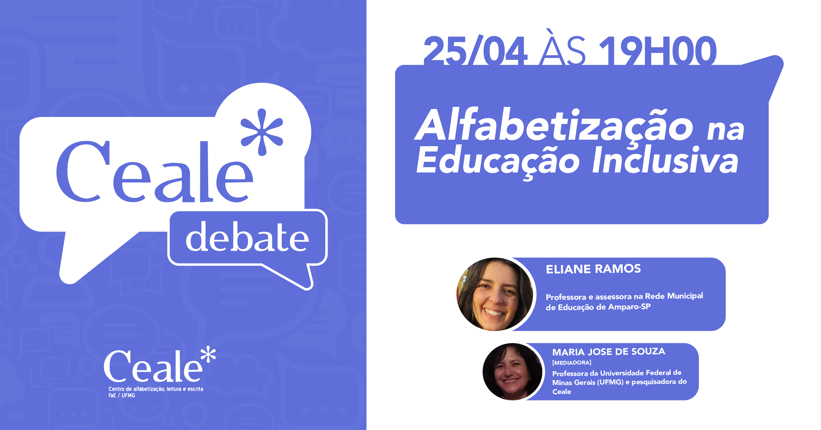 No dia 25 de abril, às 19h, o Ceale Debate recebe a professora Eliane Ramos para discutirmos sobre educação inclusiva e alfabetização.