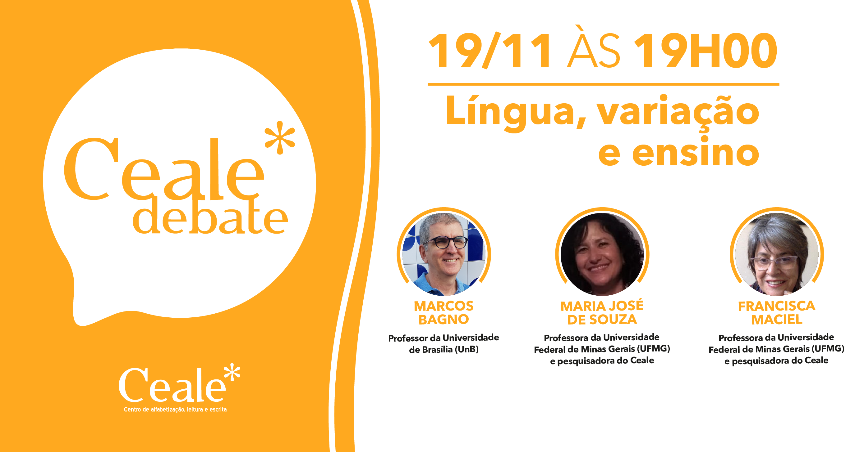 O Ceale Debate de novembro recebe o professor Marcos Bagno para uma conversa sobre língua, variação e ensino. Em sua trajetória de pesquisador e professor, Marcos Bagno tem defendido que "A variação é da própria natureza das línguas humanas, mas tradicionalmente é vista como um 'problema', como algo que precisa ser 'eliminado' para que se elabore uma 'norma' uniforme e homogênea. Essa visão tem sido contestada há pelo menos 50 anos, e isso tem impactado também o ensino de língua na escola".