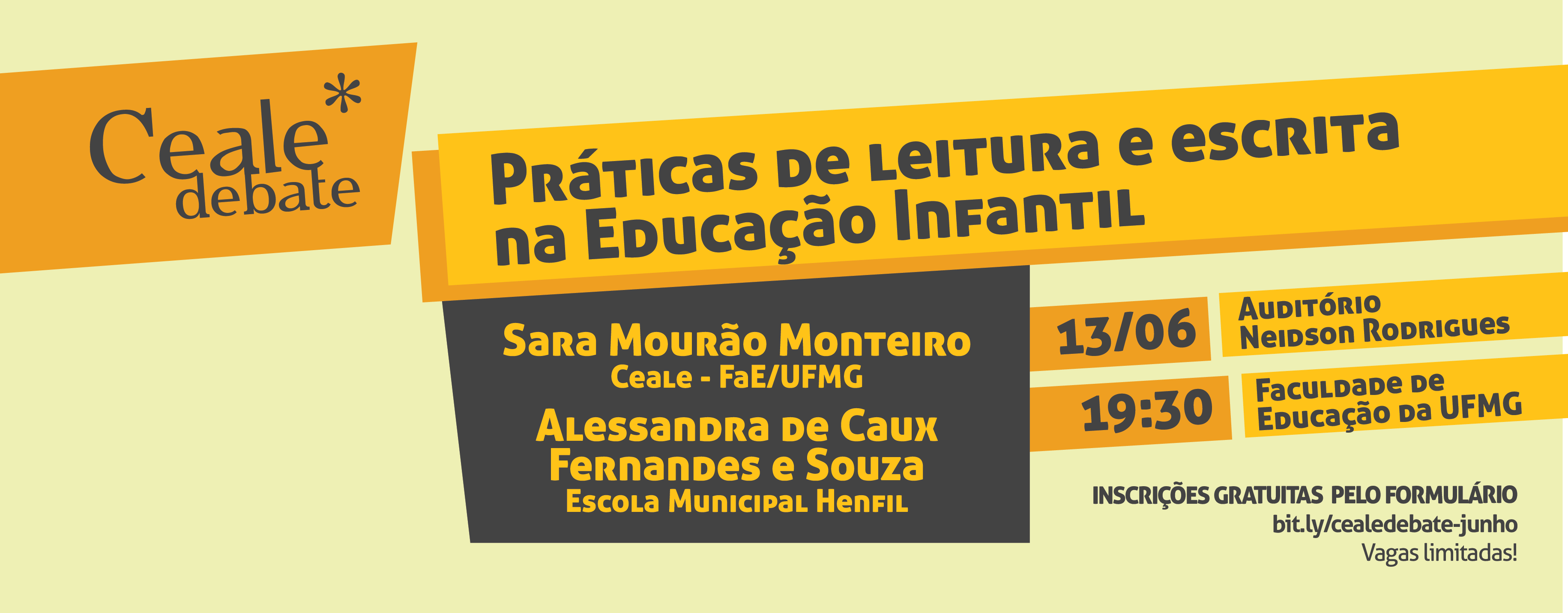 As inscrições são gratuitas e podem ser realizadas pelo formulário disponível em: bit.ly/cealedebate-junho. As vagas são limitadas.
