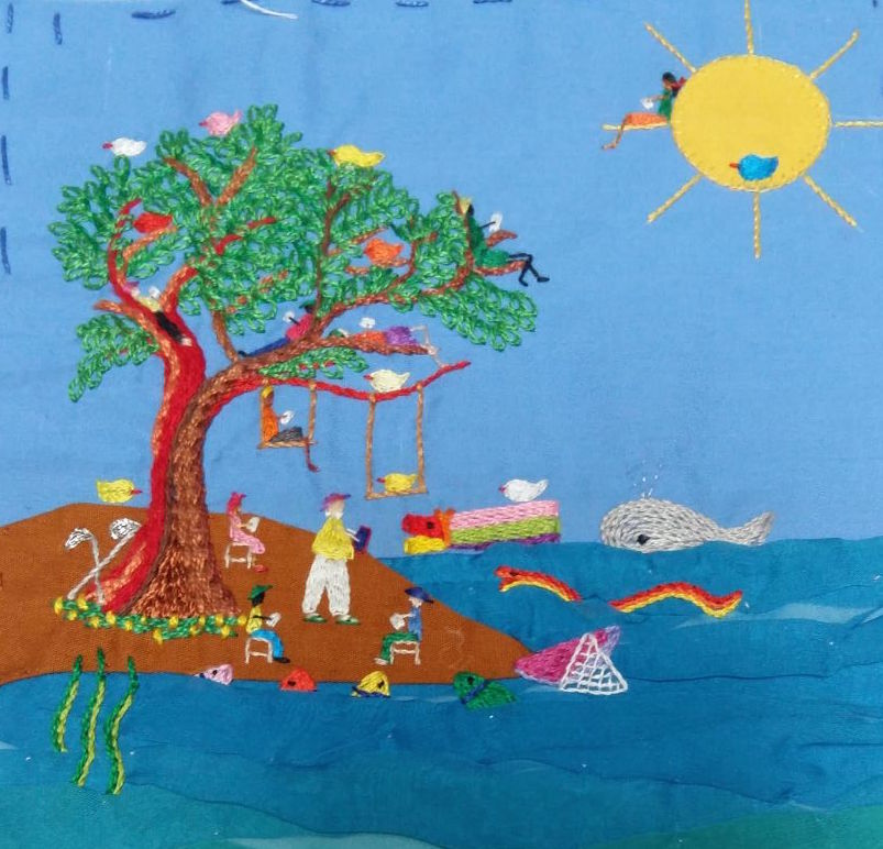 Foto: imagem-tema da Homenagem Paulo Freire, um bordado feito pela professora e artista Olinda Evangelista