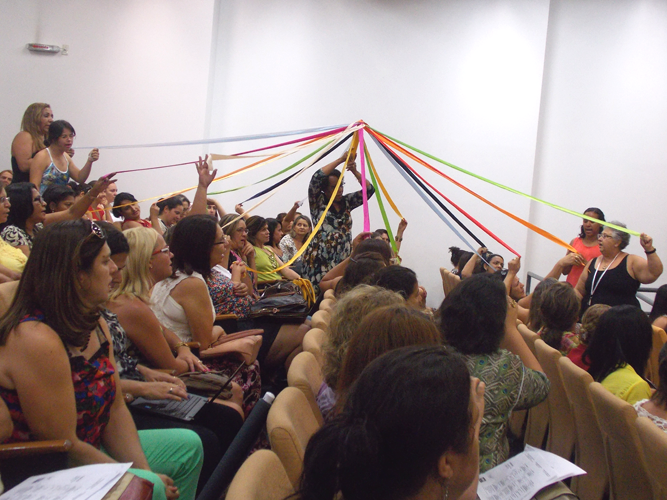 Começou hoje, dia 25, o Seminário Final do Pacto Nacional pela Alfabetização na Idade Certa (Pnaic) 2014 na UFMG. “A grandeza do nosso seminário é ouvir os municípios”, afirmou Isabel Frade, diretora do Ceale e coordenadora do programa na UFMG,  durante a abertura do evento. Na expectativa de ouvir mais os orientadores de estudos, o evento contará com a exposição de seus trabalhos através de pôsteres e relatos de experiência. Isabel comentou que essas apresentações ao longo dos três dias poderão demonstrar como a formação dos professores em palestras e oficinas realizadas em 2014 fizeram diferença em sala de aula. Para dar início ao seminário, o público se entusiasmou com a apresentação da trupe Maria Farinha, que contou histórias de maneira divertida e fez a plateia dançar.