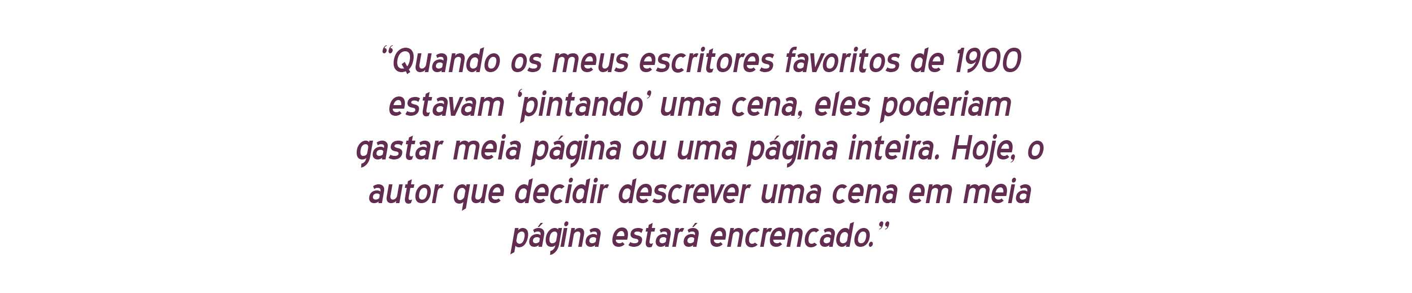 Então, em vez de fazer [da ficção] algo sagrado, ela deve ser algo integrativo, o que demanda mais tempo, mais dinheiro e um pouco do que seria dedicado a outras atividades.