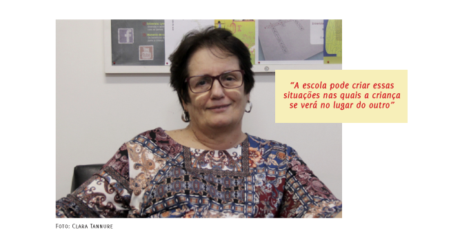 Outra intervenção que fiz na sala de aula foi quando um colega deles se mudou de Belo Horizonte. Eu sugeri que escrevêssemos uma carta ao menino, uma carta coletiva. Eles falavam e eu escrevia no quadro. Alguma criança falou: “pergunta se lá tá bom”. Eu falei: “como eu vou escrever? Dita para mim”. Ele disse: “lá tá bom?”. E perguntei para a turma: “Quando o Henrique ler a carta, ele vai entender?”. Eles demoraram, até entender que não podia ser “lá”, porque “lá” é para nós, produtores, mas, para o interlocutor, tinha que ser “aí”. A escola pode criar essas situações nas quais a criança se verá no lugar do outro.