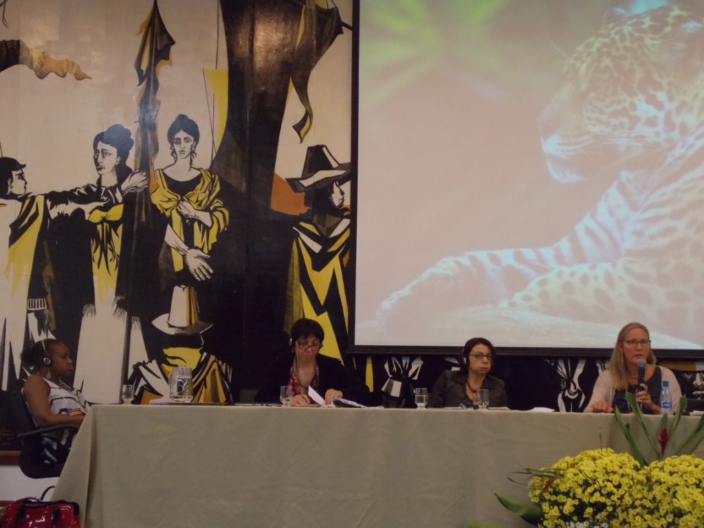 Elaine Richardson, da Ohio State University, exemplificou os preconceitos étnicos, linguísticos e culturais contra as comunidades negras nos Estados Unidos. A discussão prosseguiu com a pesquisadora Elisa Cragnolino (Universidade Nacional de Córdoba), que abordou histórica e culturalmente a educação numa sociedade camponesa no norte de Córdoba (Argentina), marcada pelo deslocamento para as cidades. A professora da Faculdade de Educação da UFMG Shirley Miranda fez apontamentos sobre eventos de letramento na comunidade quilombola de Santo Izidoro, no interior de Minas Gerais. O fechamento da mesa de debate ficou por conta da pesquisadora Mollie Blackburn, também da Ohio State University, que trouxe a história de Kai, uma criança que desafia as estruturas padronizadas de gênero e sexualidade, nos Estados Unidos.