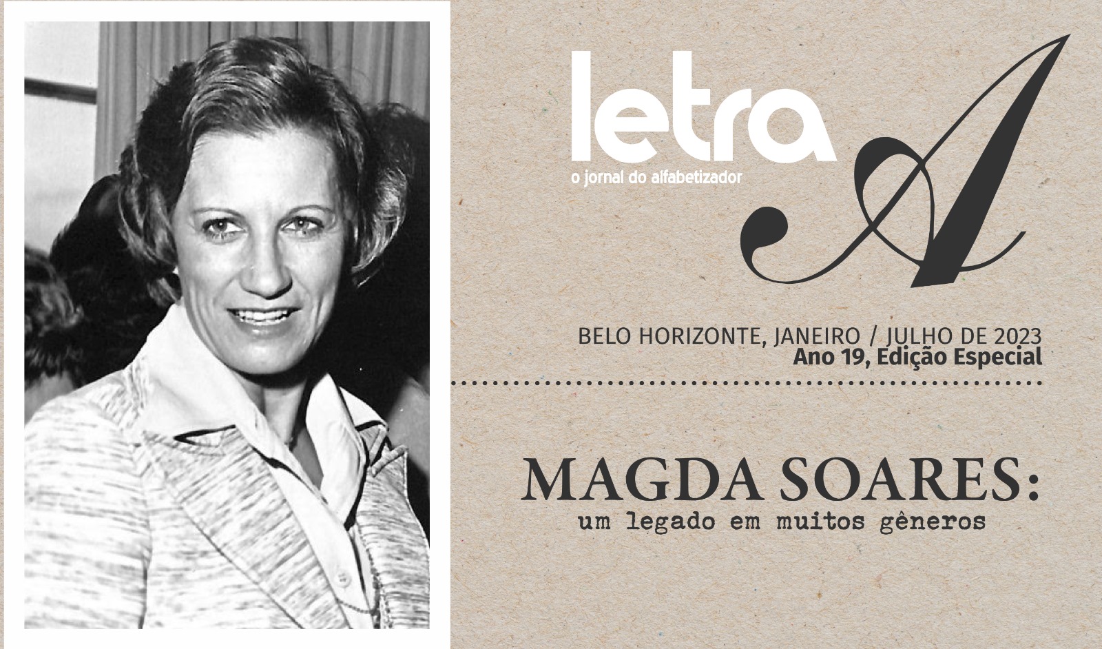 Nesta edição, o Letra A faz mais uma merecida homenagem à professora Magda Soares, com trechos de suas entrevistas, reflexões sobre sua vida como pesquisadora e professora e sobre os temas aos quais dedicou grande parte da sua vida. O jornal também traz falas de pessoas que conheceram e se relacionaram com Magda e mensagens de carinho.